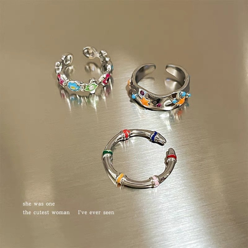 Cincin Jari Bunga Terbuka Warna Korea Gaya Retro Vintage Fashion Copper Adjustable Y2k Untuk Wanita Aksesori-cl