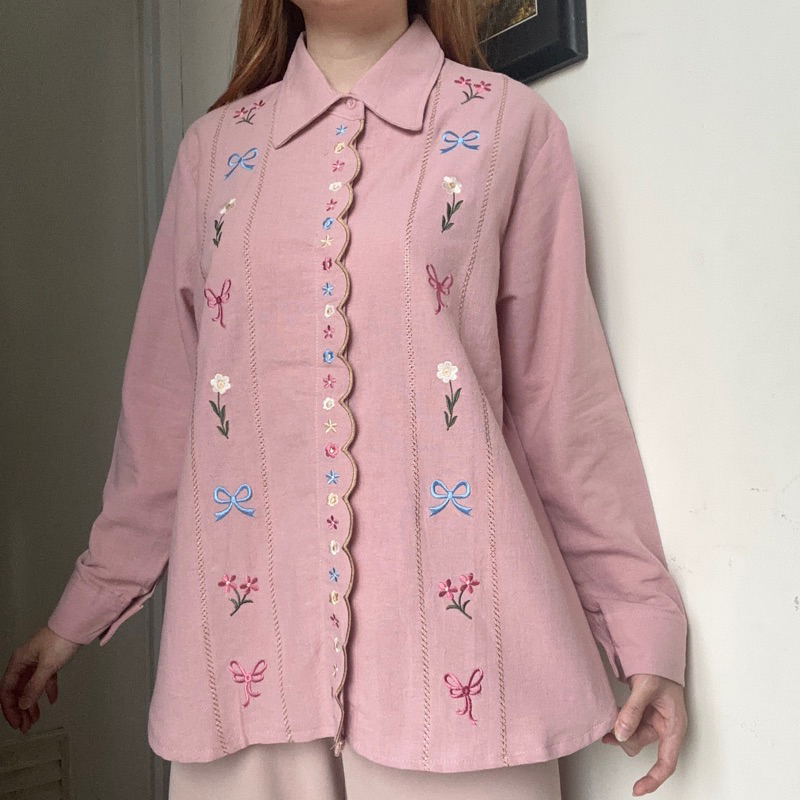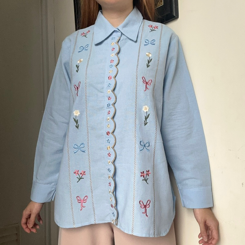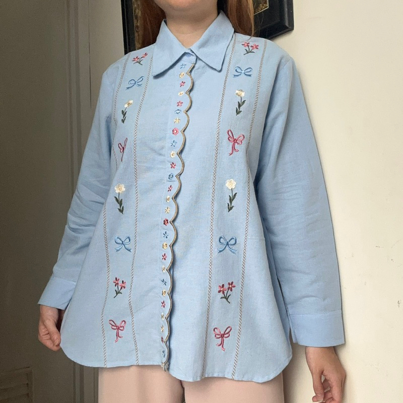 Kirana Top atasan wanita blouse kemeja kerja linen bordir korean style by Biel the label