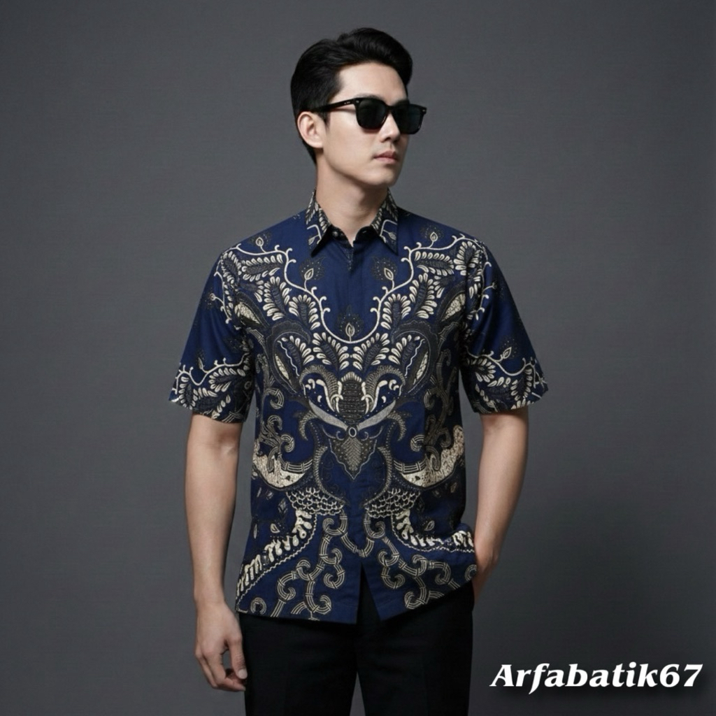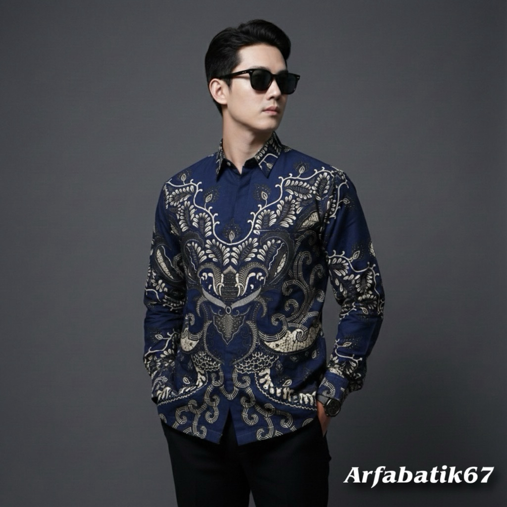 RANTING NAVY Kemeja batik pria lengan panjang dan lengan pendek katun pria premium lapis furing hero ready