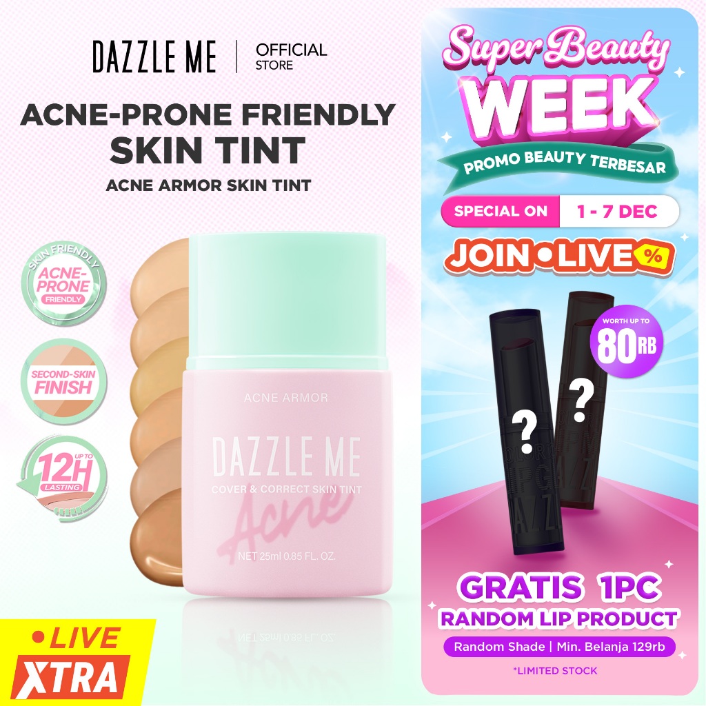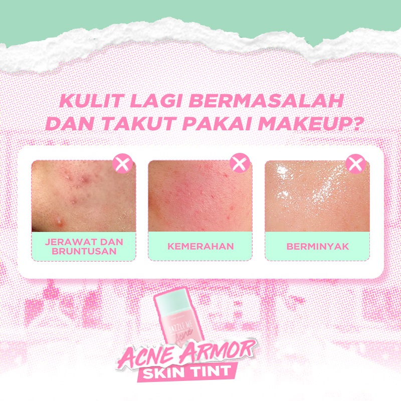 Skin Tint Dazzle Me Acne Armor Cover Correct Untuk Kulit Berjerawat Kontrol Minyak Tahan Lama 12 Jam
