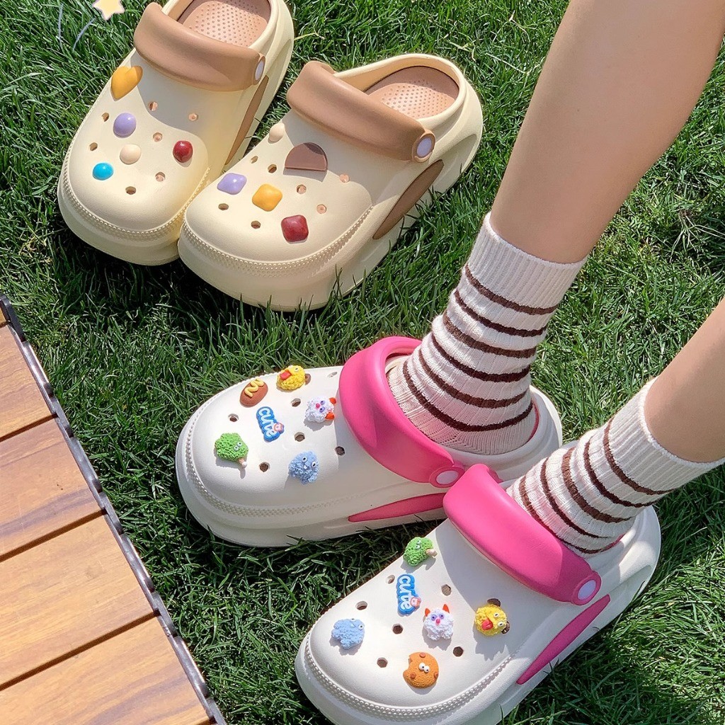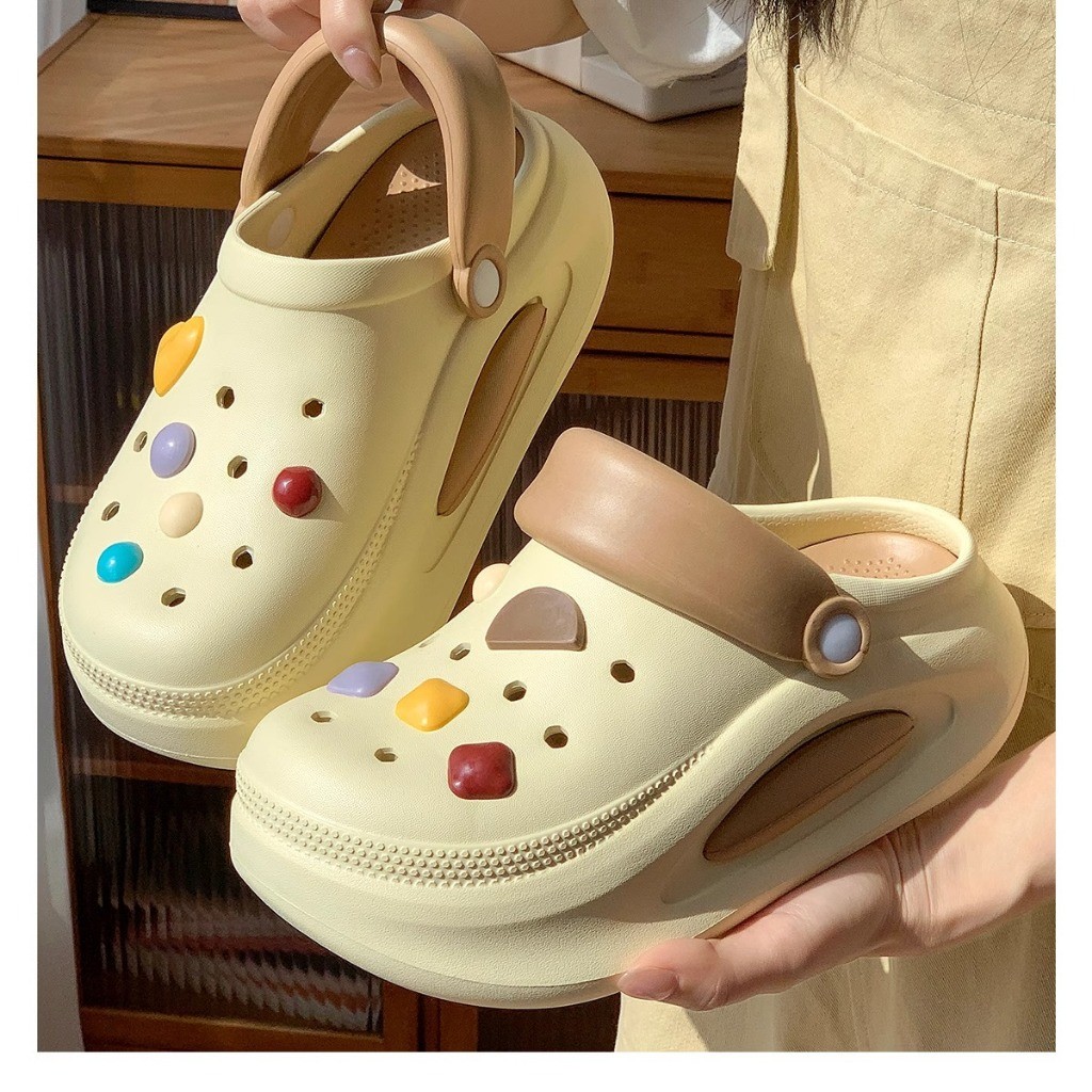 XT198_Sandal Fuji Lucu Sandal Wedges Cewek Model Bakpao Polos Ringan Sendal Platform Wanita Trending