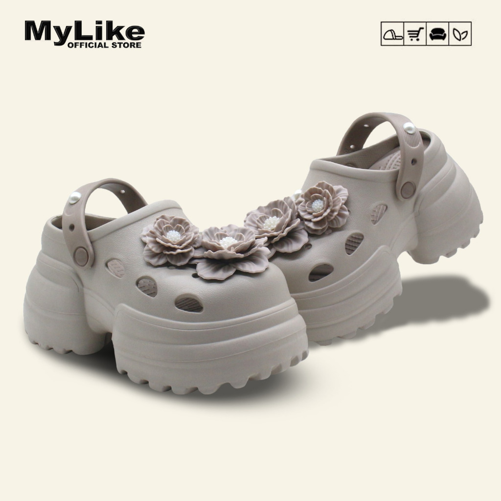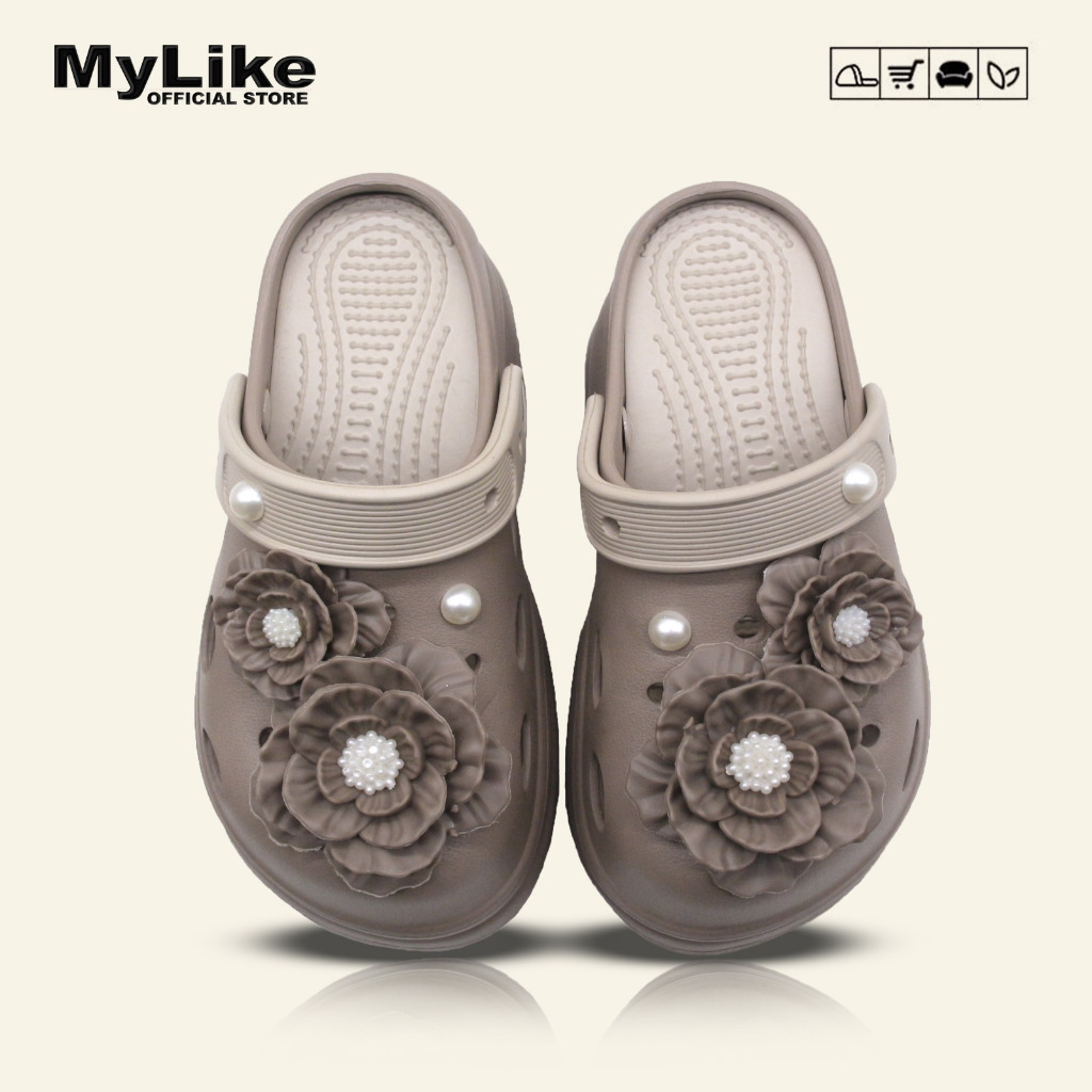 MYLIKE-Sandal Baim Clog Wedges Wanita Motif Bunga Terbaru