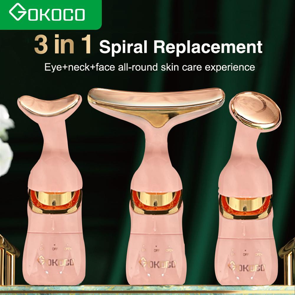 Alat Pijat Getar Multifungsi Gokoco 3 In 1 Pink Pijat Wajah Leher Mata Krim Facial