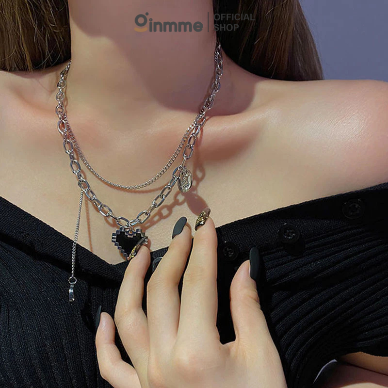 Ginmme Kalung Kupu-kupu Mutiara Gaya Korea Punk Rantai Bentuk Jantung Fashion Aksesoris