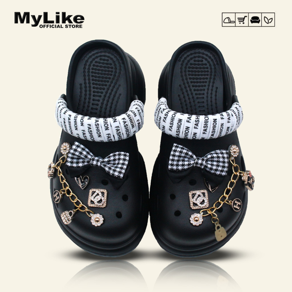 MYLIKE -Sandal Wedges Baim Clog Tinggi 10cm Super Elegan Free Jibbitz Terbaru