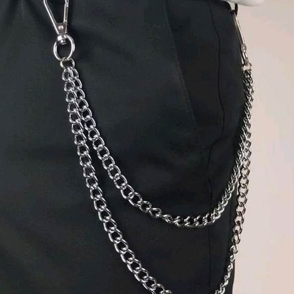 aksesoris rantai silver berlayer double layer dompet sabuk belt chain only rantai kait celana punk/ rantai dompet ikat k