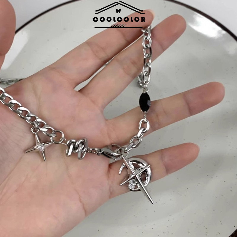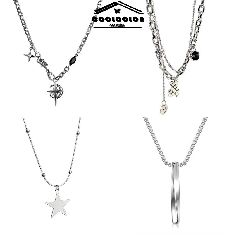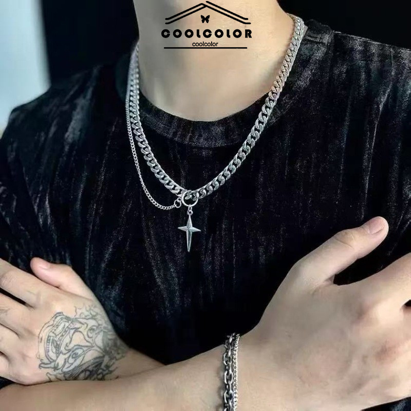 Kalung Titanium Wanita/Pria Double Layer /Kalung Bintang /Kalung Silang/Kalung Pria Punk Rantai Anti Karat Tulang Selan