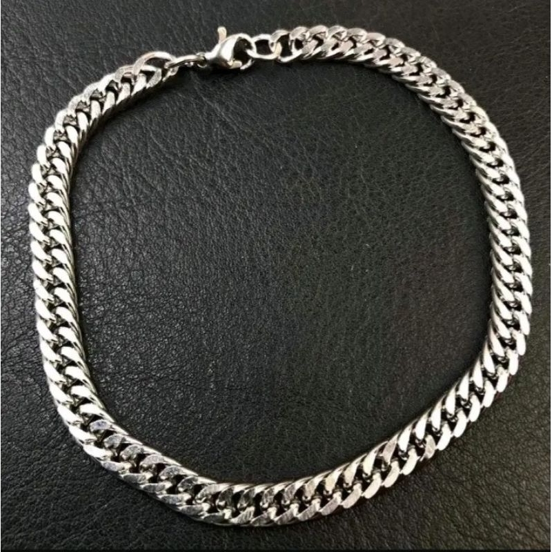 Gelang Rantai Titanium Silver Pria Wanita Model Rantai Rapat Accesories Fashion Casual Elegant Anti Karat
