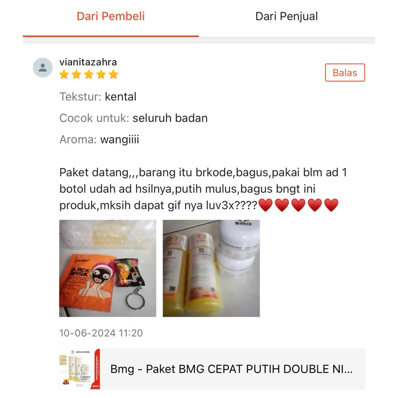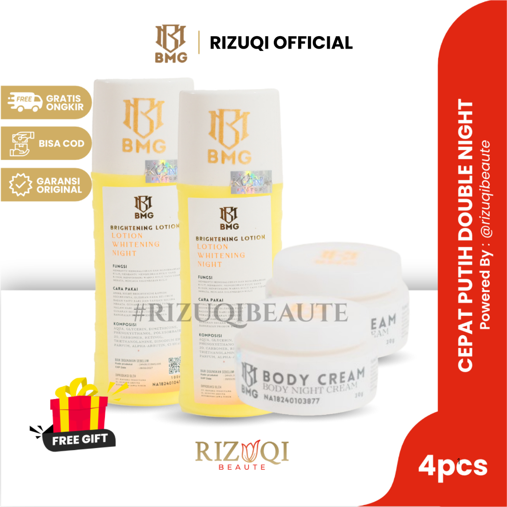 Skincare Bmg Paket Cepat Putih Double Night Brightening Lotion Dan Body Night Cream Original