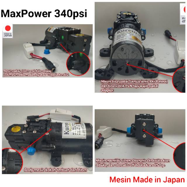 Alat Cuci Motor & Mobil & AC & Tanaman Pompa Air Mini DC 340 PSI Portabel Berkualitas Tinggi