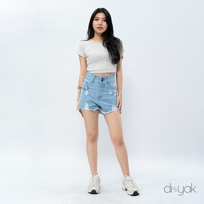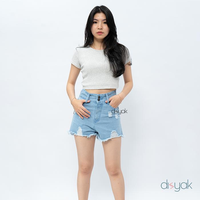DISYAK - Hotpants Jeans Celana Pendek Wanita Non Stretch Ripped 1043-2043 Light Blue - Light Blue 27