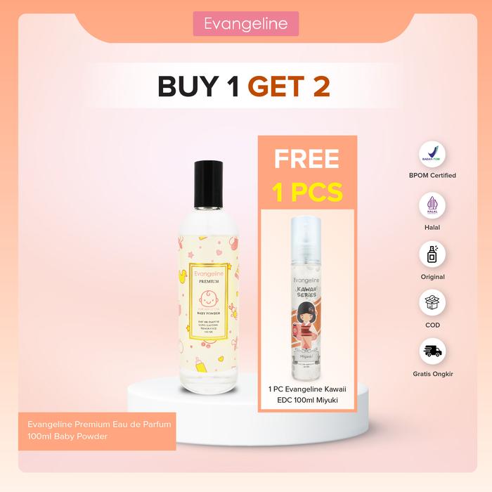 【BUY 1 GET 2】Evangeline Baby Powder EDP + Evangeline Kawaii Miyuki EDC - Parfum Wanita 100ML