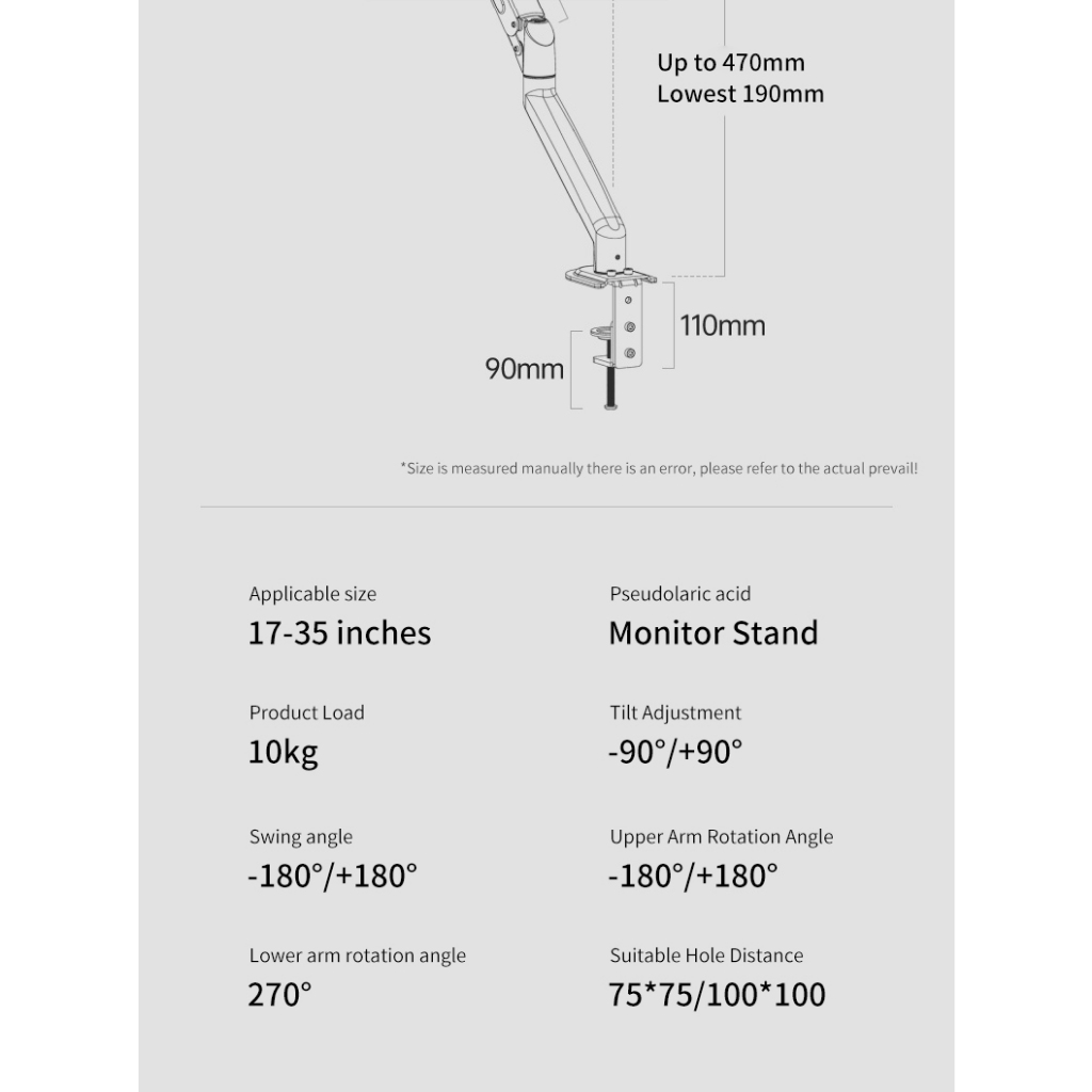 Bracket Tv Sage F80 Gas Spring Arm Tilt Swivel Monitor Led Lcd 19 Sampai 34 Inch