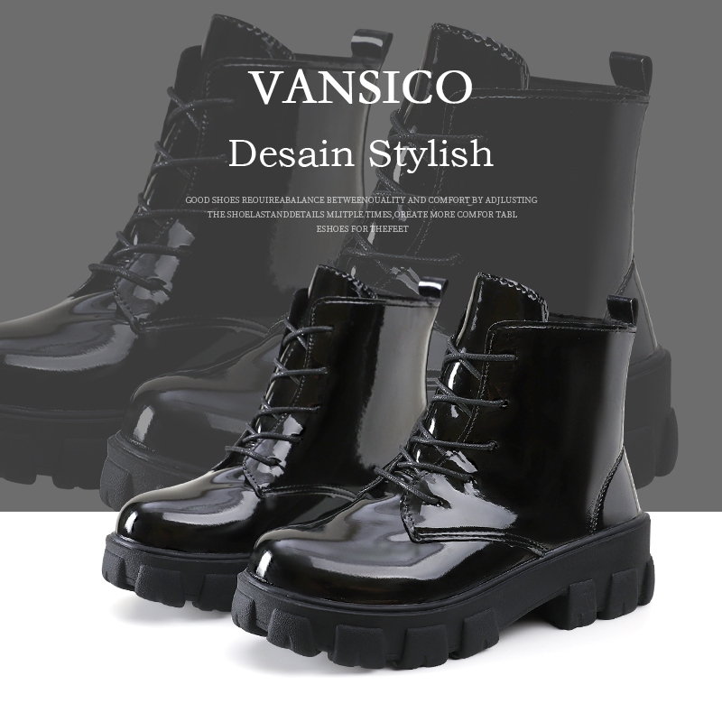 VANSICO Sepatu Boots Wanita Korean Style Sepatu Oxford Wanita Sneakers Boots Anti Air Glossy/Doff SP099