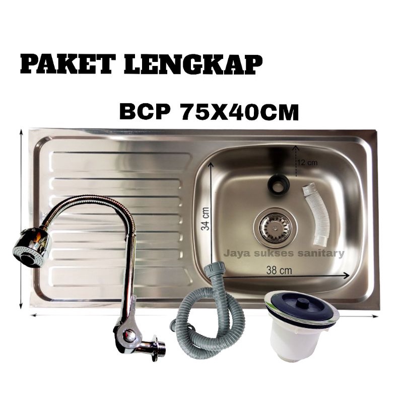 Bak Cuci Piring Wastafel 75X40 Cm Bonus Selang Kran Flexible Stainless 1/2 Inch