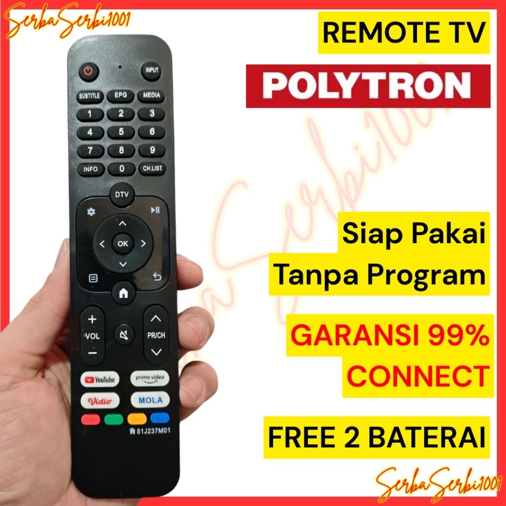 FREE 2 Baterai Remote TV POLYTRON / Remot TV Universal POLYTRON 81J237
