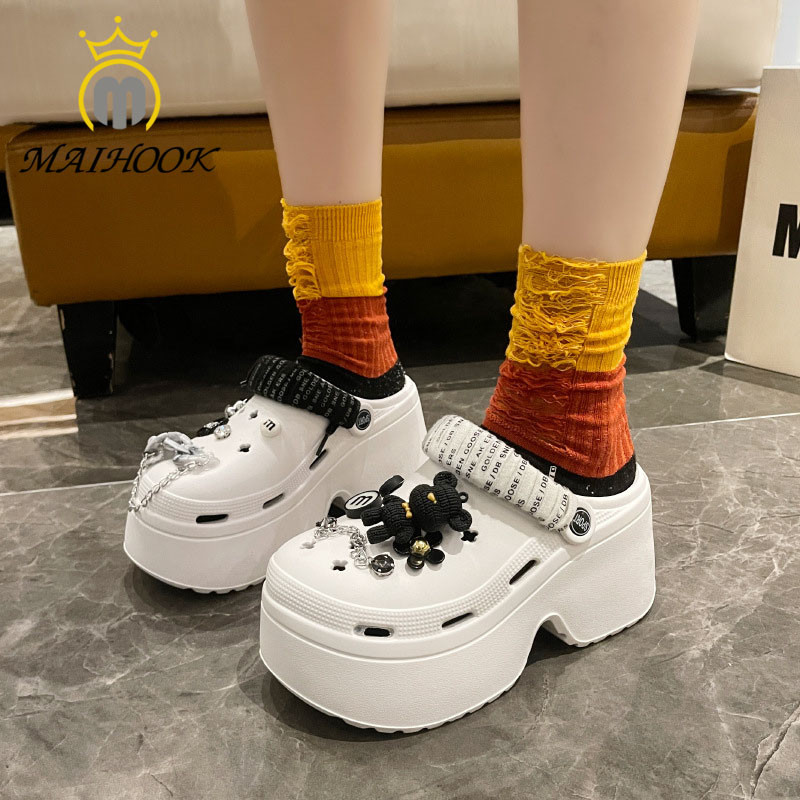 MAIHOOK Sandal Kodok Dewasa Wanita Kekinian Sandal Fuji Sandal Baim Wedges sandal Sandal Bakpao Jelly Platform Wanita Sol Tebal Anti-selip