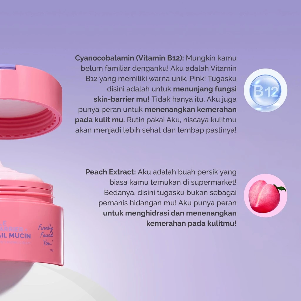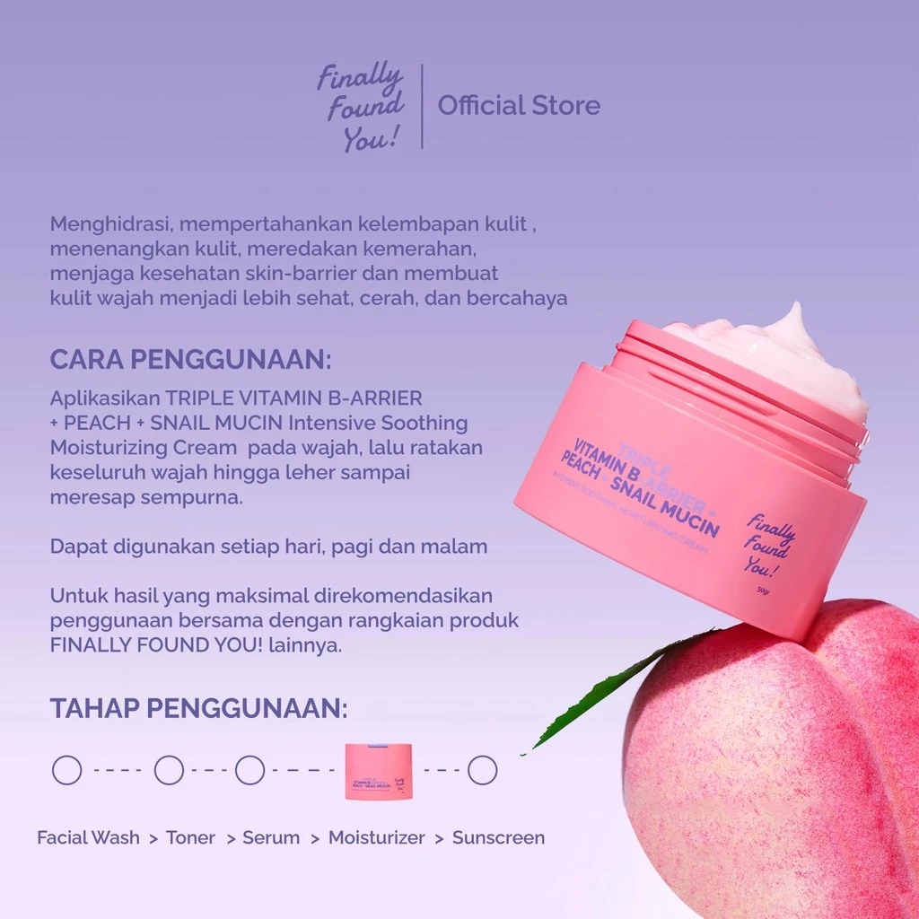 Finally Found You TRIPLE VITAMIN B-ARRIER + PEACH + SNAIL MUCIN Intensive Soothing Moisturizing Cream 50gr
