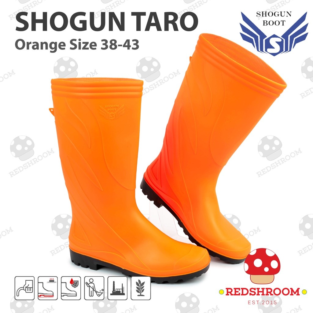Sepatu Boot Tinggi SHOGUN TARO Orange Boots Karet Lokal Lentur Anti Air & Slip Kebersihan Proyek