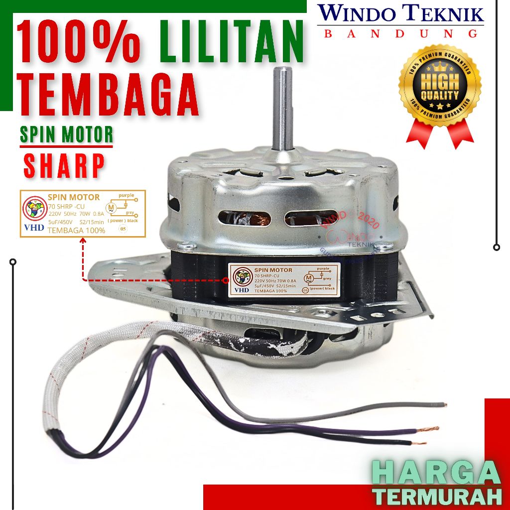 DINAMO SPIN SHARP 70WATT VHD | DINAMO PENGERING MESIN CUCI SHARP 2TABUNG VHD | DINAMO SPIN PENGERING MESINCUCI 2 TABUNG SHARP 70WAT | MOTOR SPINER / SPINNER SHARP 2 TABUNG KAKI 3
