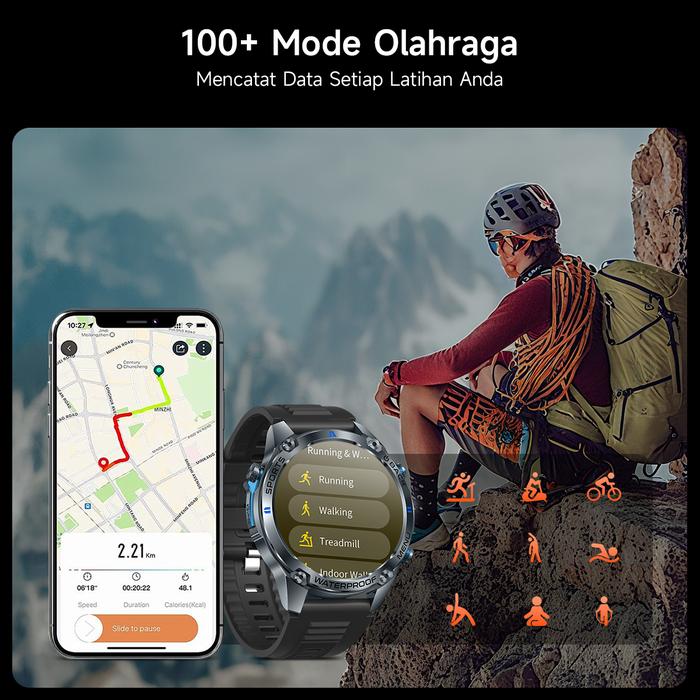 MAJDOMO GPS Smartwatch Pro 5ATM Tahan Air AMOLED 1.43 inci 100 Mode Olahraga SpO2 Bluetooth