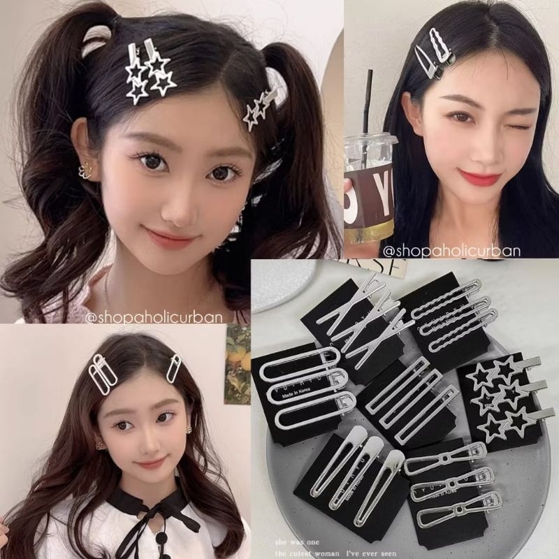 Jepit Poni Korea Satu Set Klip Rambut Jepit Aesthetic Aksesoris Rambut Korean Style