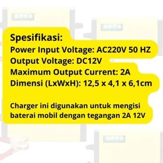 Casan Aki Motor Mobil Portable Automatic 12V 2A 20A Auto Cut Off Digital Charger