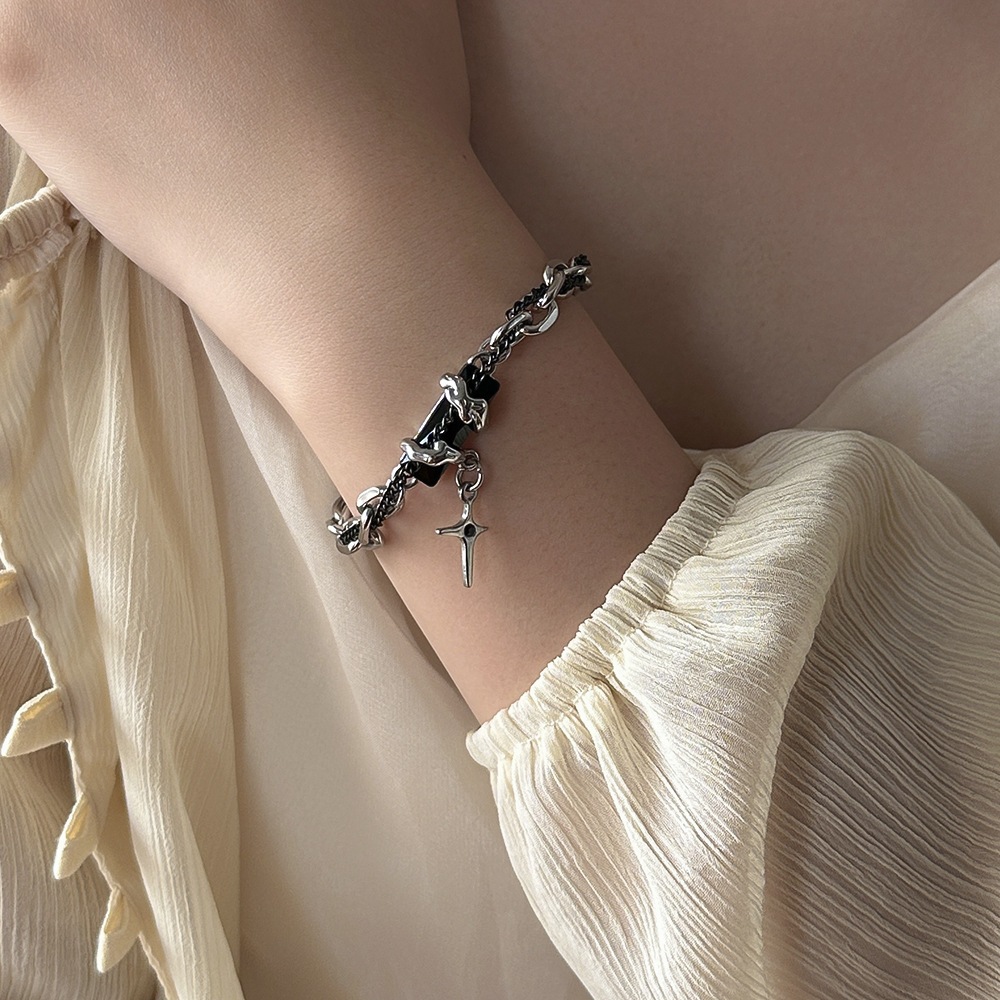 Gelang baja titanium berbalut bintang silang untuk pria aksesori keren mewah an / gelang bintang putar gaya sederhana k