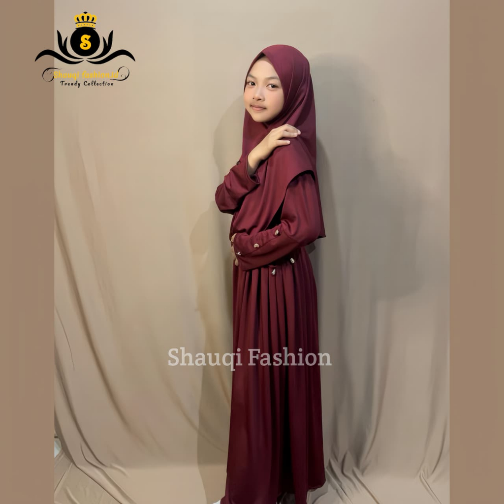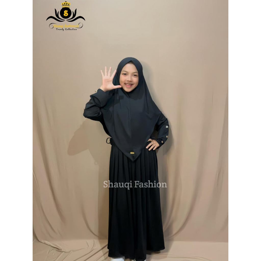 Gamis Abaya Anak Set Hijab Serut Jersey Lembut Nyaman