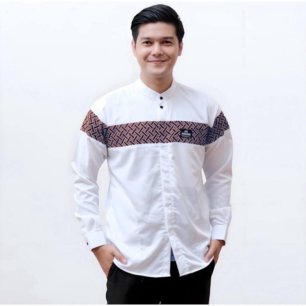 Baju Koko Pria Dewasa Lengan Panjang Motif Kobata Qynang Kombinasi Batik Terbaru