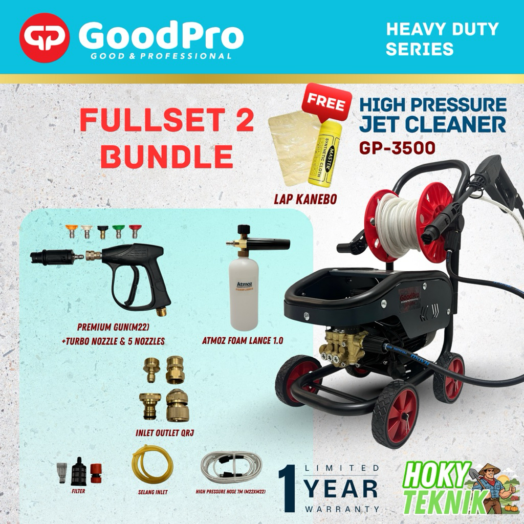GoodPro Jet Cleaner Pressure Washer Mesin Cuci Mobil Motor AC GP700 GP2500+Regulator GP3500 Plus RODA dg PENGATUR TEKANAN Bonus KANEBO
