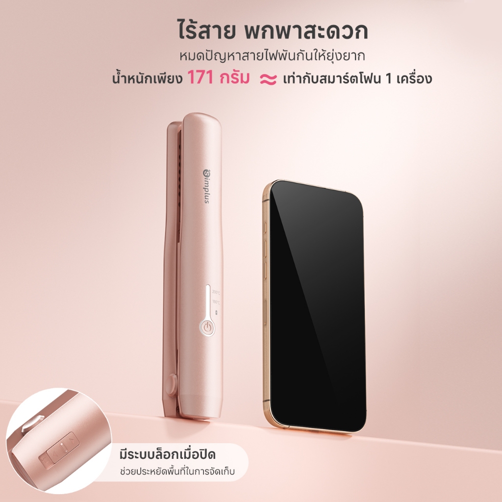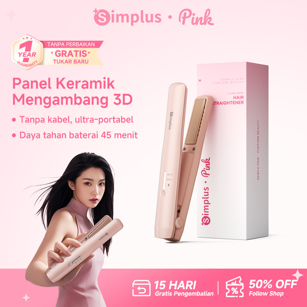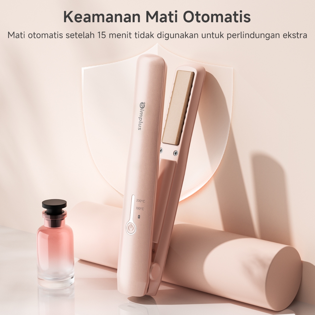 Catokan Rambut Simplus Pink 2 In 1 Cordless Tanpa Kabel Portabel Pelurus Pengeriting Hadiah Ulang Tahun