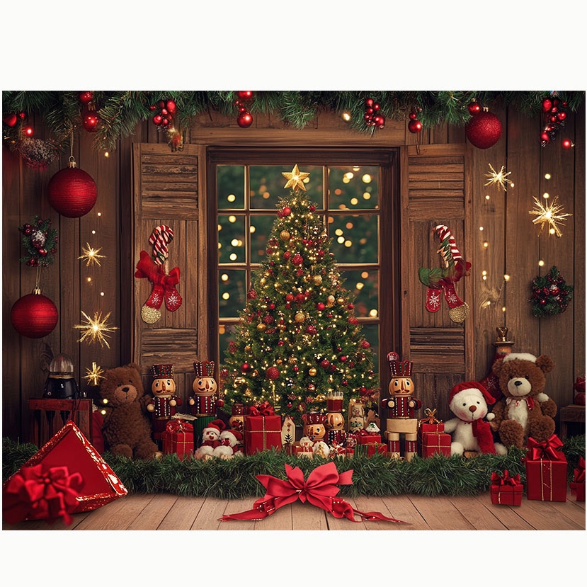 Latar belakang Natal musim dingin, hadiah di bawah pohon Natal, dekorasi anak-anak, poster, spanduk gantung bertema pest