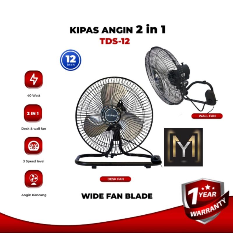 Kipas Angin Advance 2in1 TDS12 tds 12 wallfan deskfan 2 in 1 (bisa meja dan dinding)
