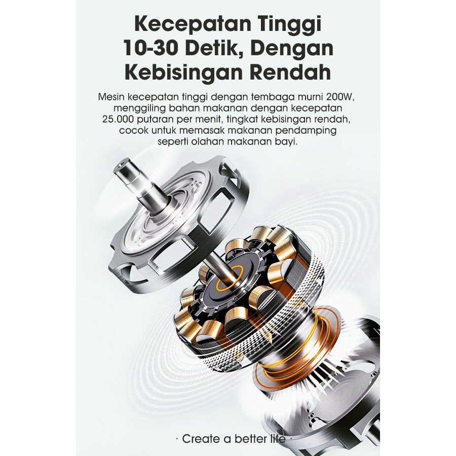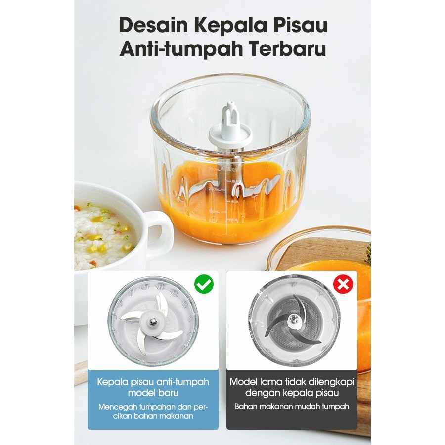 Chopper Mpasi Samono Makanan Bayi Wadah Kaca 300Ml Food Grade 200W 8 Mata Pisau
