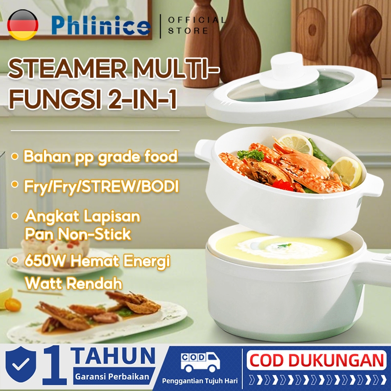 Panci Listrik Phlinice Phlinice 3in1 Anti Lengket Kukusan 600w 2l