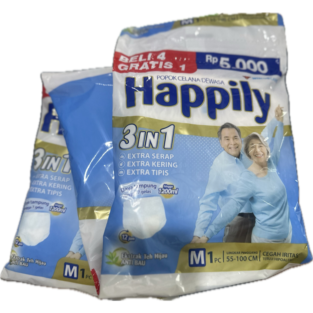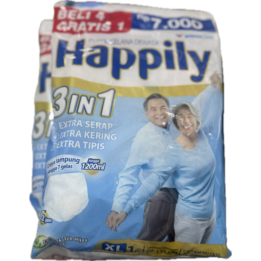 HAPPILY PANTS RENCENG 5 PCS POPOK D3W4SA CELANA ORANG TUA DIAPERS M L XL 1 M1 L1 XL1 ADULT PREMIUM DIAPER PANT EXTRA SERAP AIR GROSIR BANDUNG SEKALI PAKAI SIZE CONFIDENCE OTO LIFREE