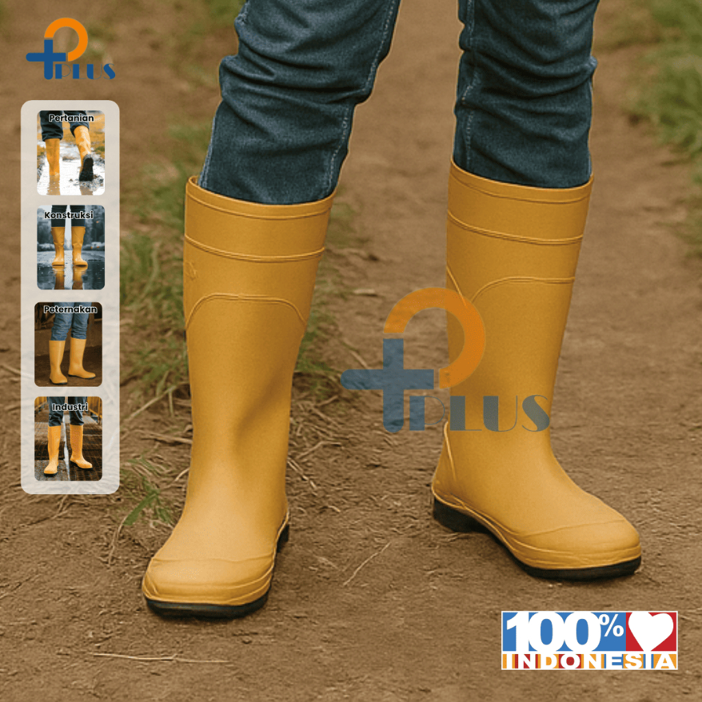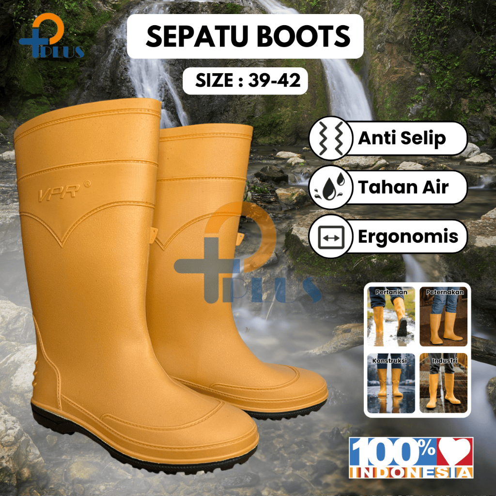 Sepatu Boot Tinggi Premium Oren Boots Karet Lokal Lentur Anti Air & Slip Perkebunan