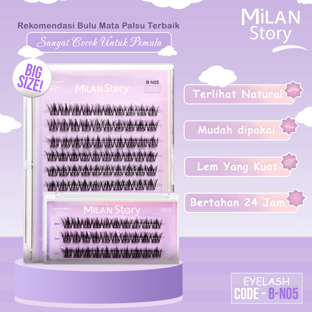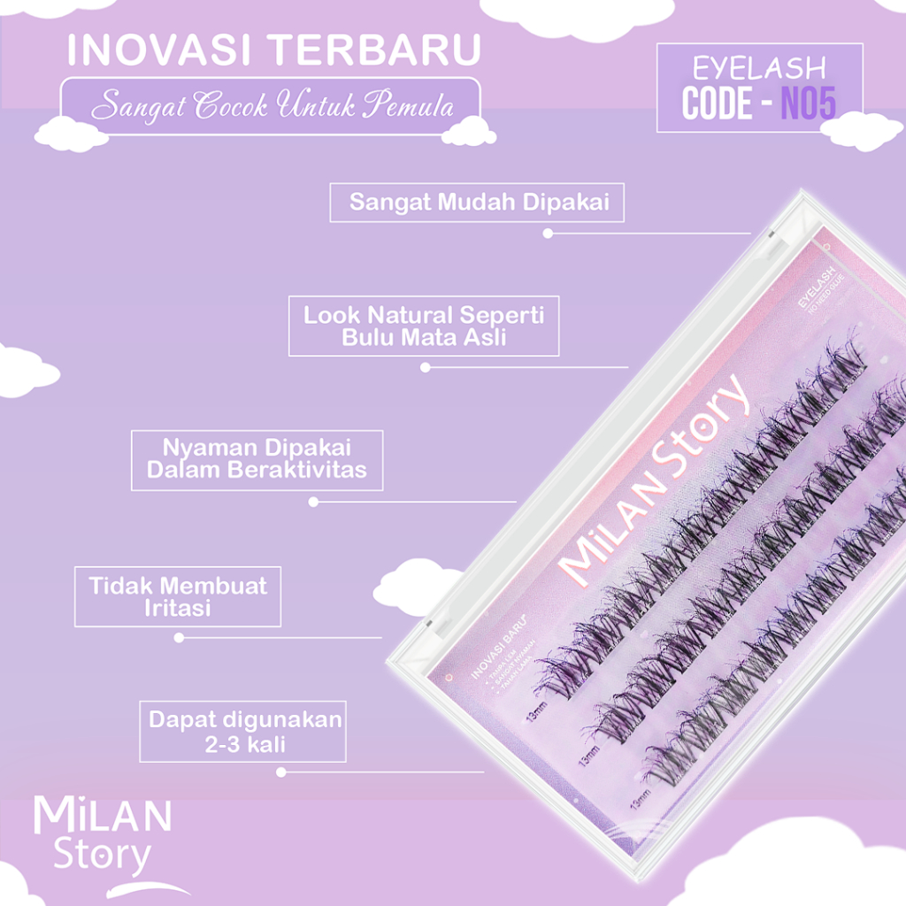 Bulu Mata Milan Story N05 Wispy Tebal Langsung Tempel Serat Kapas Premium Mudah Digunakan Reusable