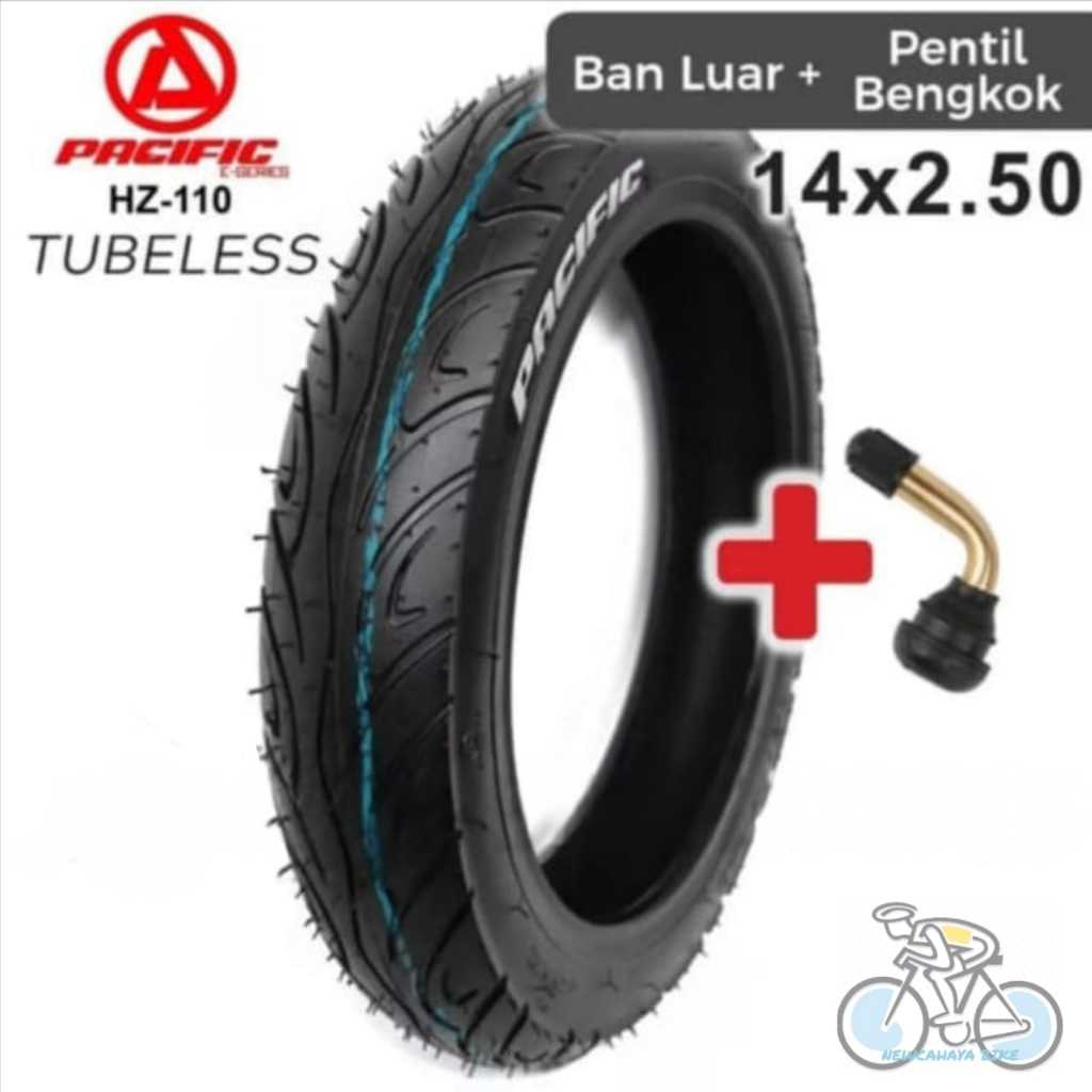 Ban luar sepeda listrik 14 x 2.50 inch ban tubeless exotic dan pentil miring Pvr 50 high quality new termurah