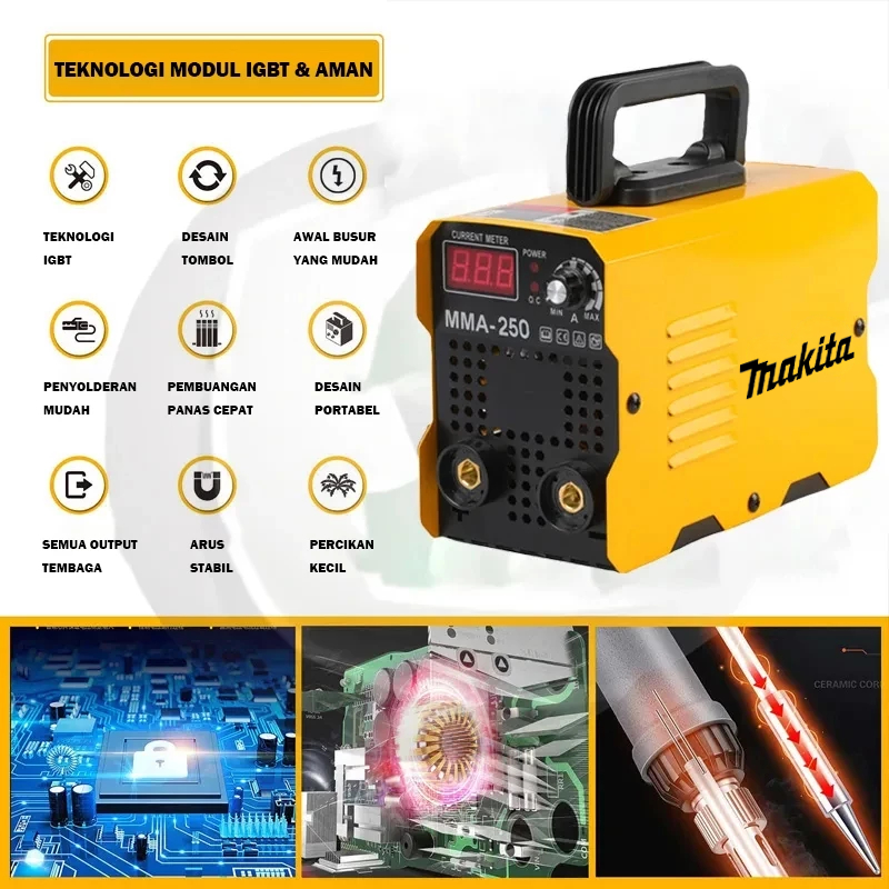 [GARANSI RESMI] Mesin Las Inverter MAKITA MMA-250 450W IGBT - Alat Las Listrik Portable Anti-Stick untuk Besi & Stainles