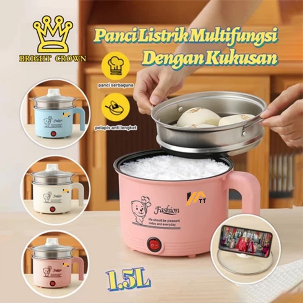 Panci Listrik Yatt Yatt Bright Crown 1.5l 2in1 Keramik Free Kukusan