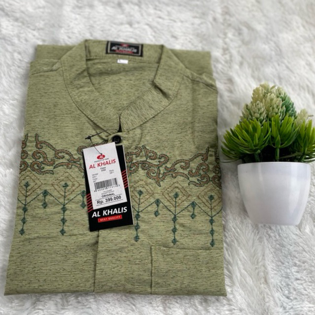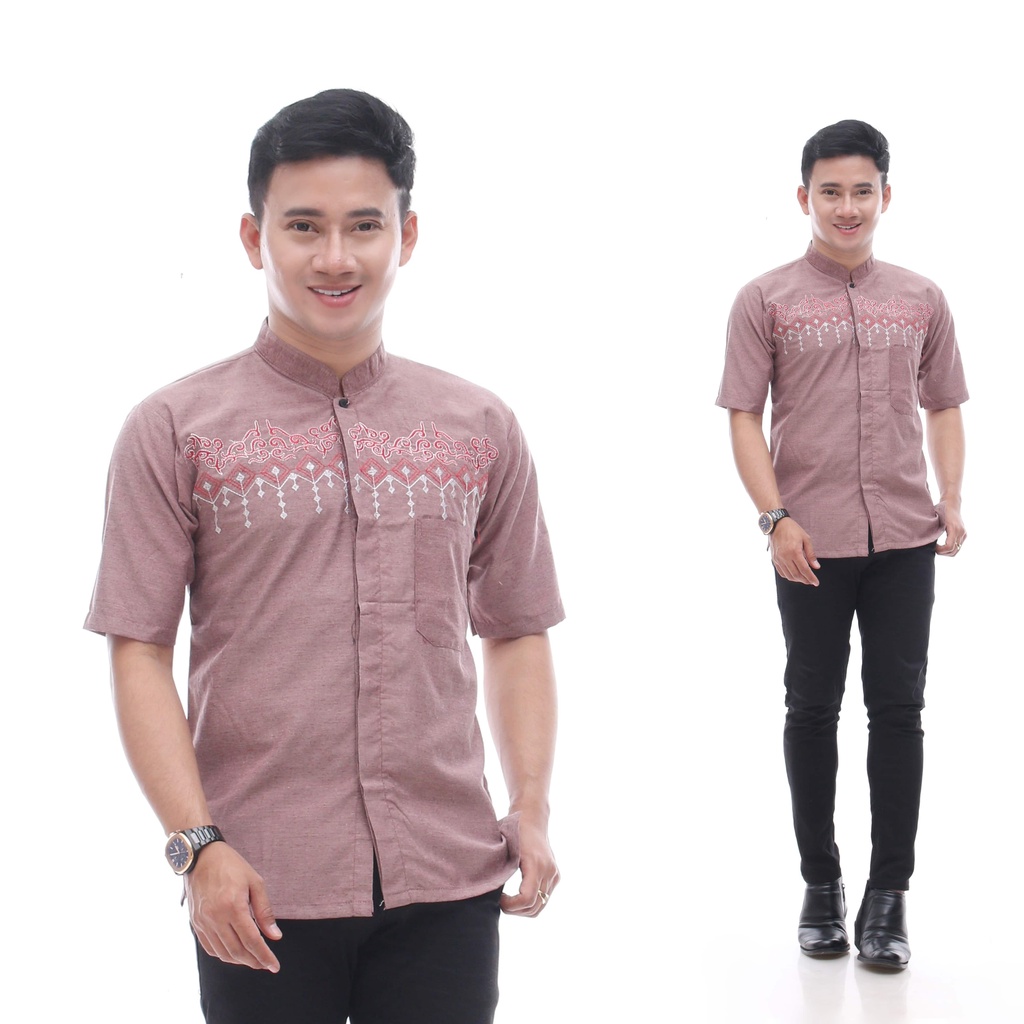 BAJU KOKO BORDIR LENGAN PENDEK TERMURAH BUSANA MUSLIM PRIA ALKHALIS
