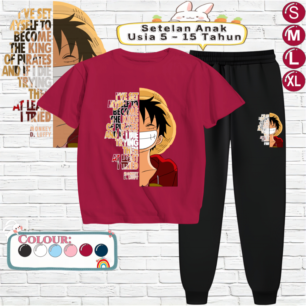 Setelan Kaos Anak Unisex Celana Jogger 5-15 Tahun Motif LUFFY QUOTE