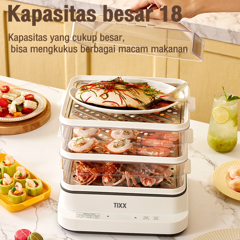 Electric Steamer Tixx Kukusan Listrik 18L 3 Lapis Multifungsi