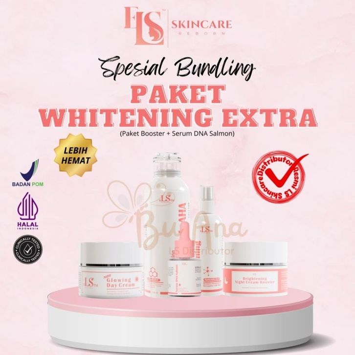 SKINCARE WANITA GLOWING BPOM PAKET WHITENING EXTRA DAPAT 5 ITEM BOOSTER + DNA SALMON LS SKINCARE FREE POUCH
