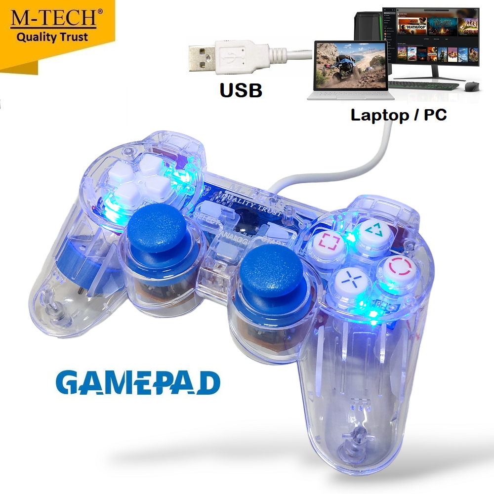 Gamepad Single Getar Joystick Transparan Mtech Untuk Pc Laptop