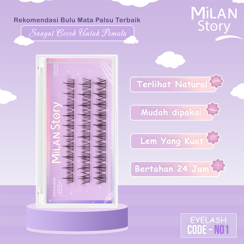 Bulu Mata Milan Story N01 Natural Langsung Tempel Serat Kapas Premium Mudah Digunakan Reusable
