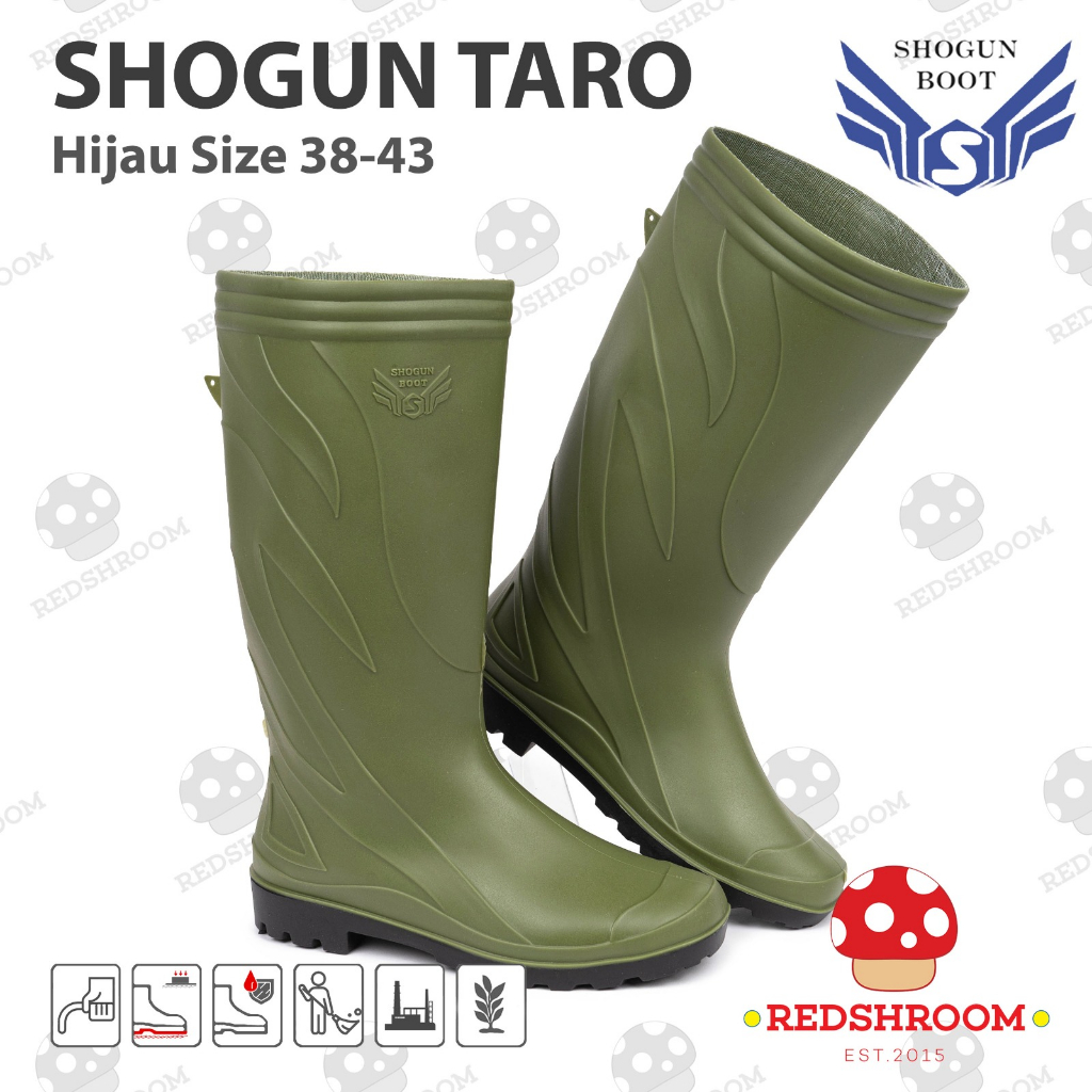 Sepatu Boot Tinggi SHOGUN TARO Hijau Boots Karet Lokal Anti Slip Air Nyaman Lentur Perkebunan