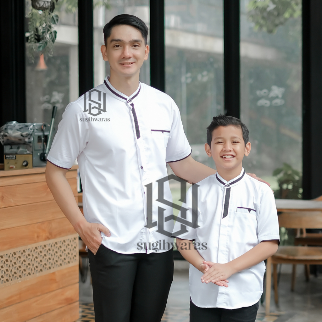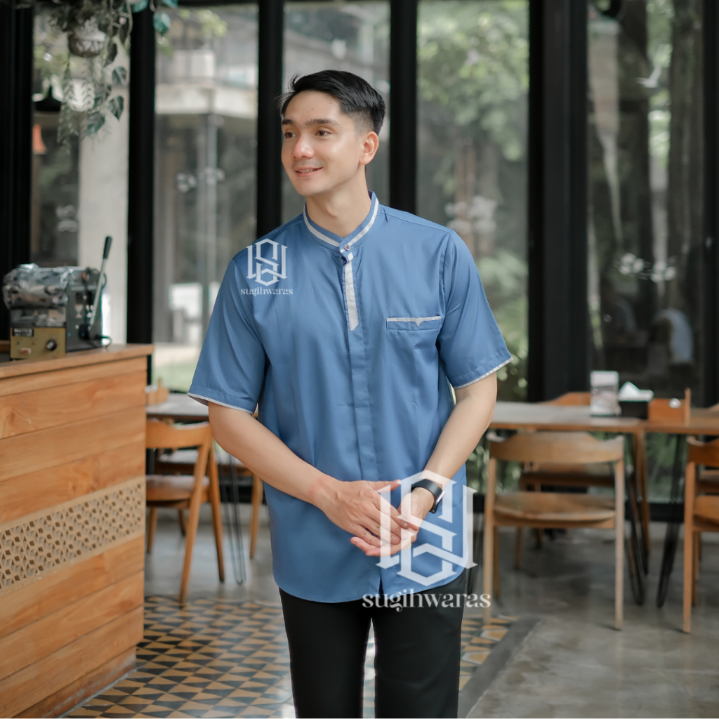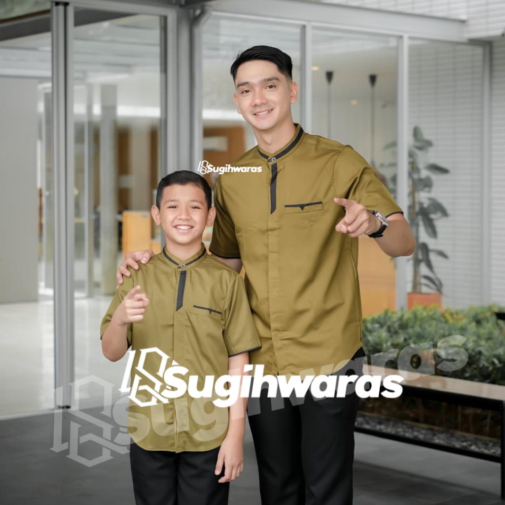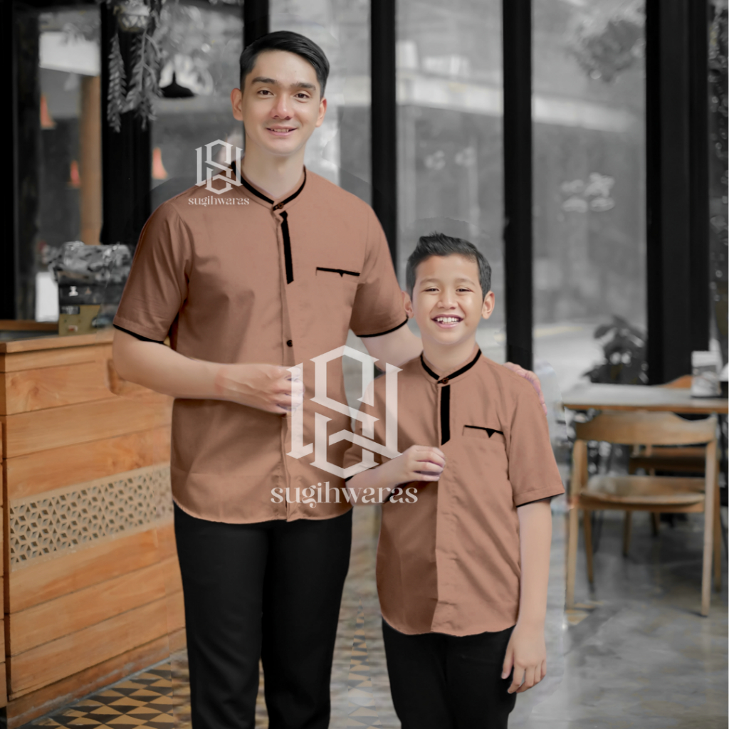 Baju Koko Couple Ayah Dan anak Laki Laki Lengan Pendek Terbaru Kain Toyobo Warna Denim